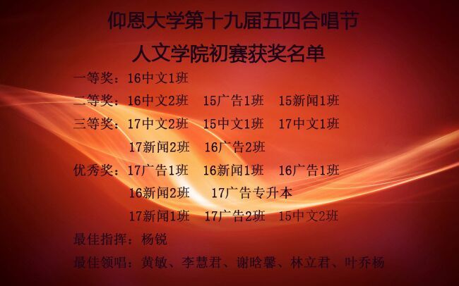 仰恩大学第十九届五四合唱节奥门新浦京官网初赛获奖名单