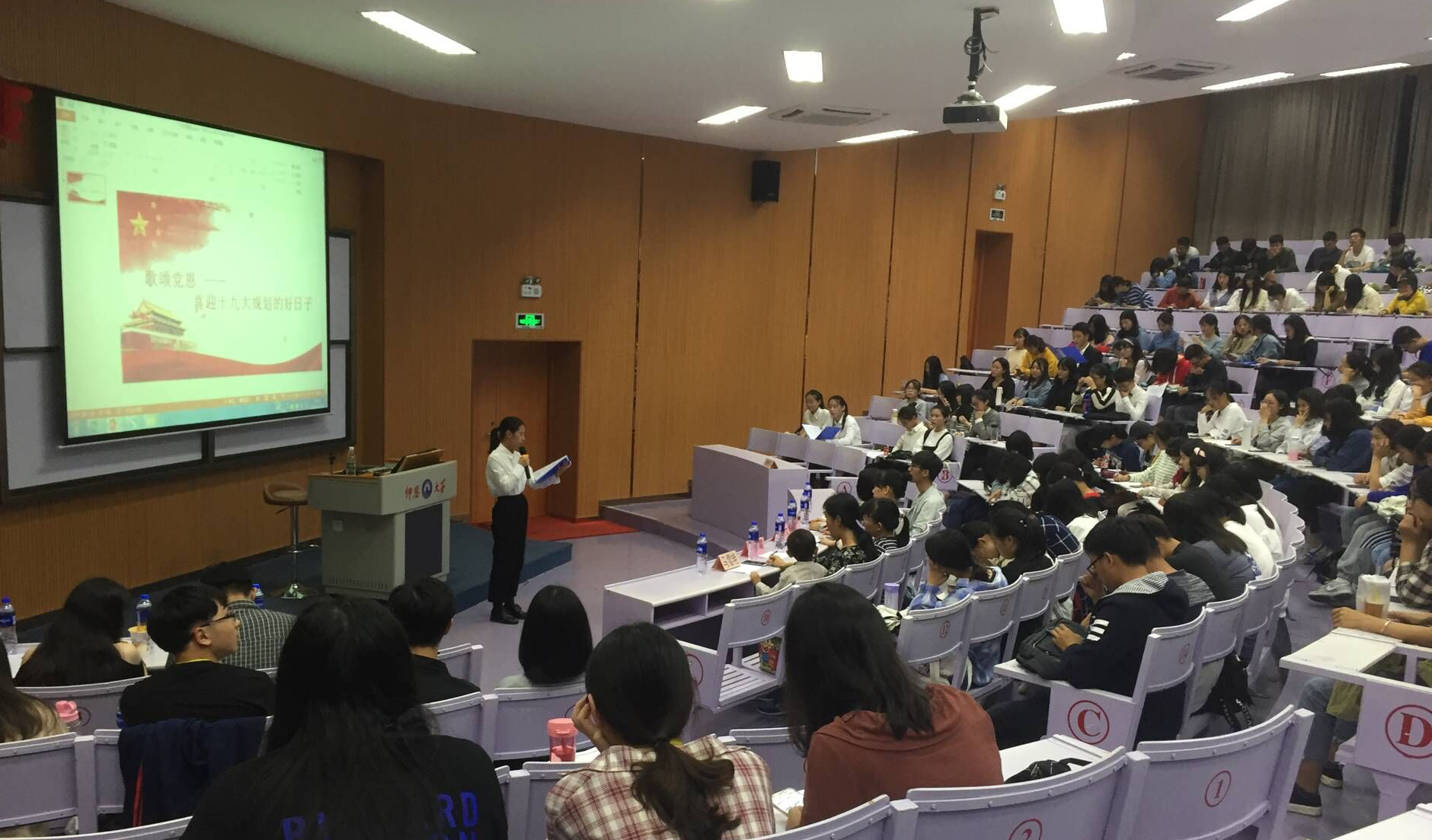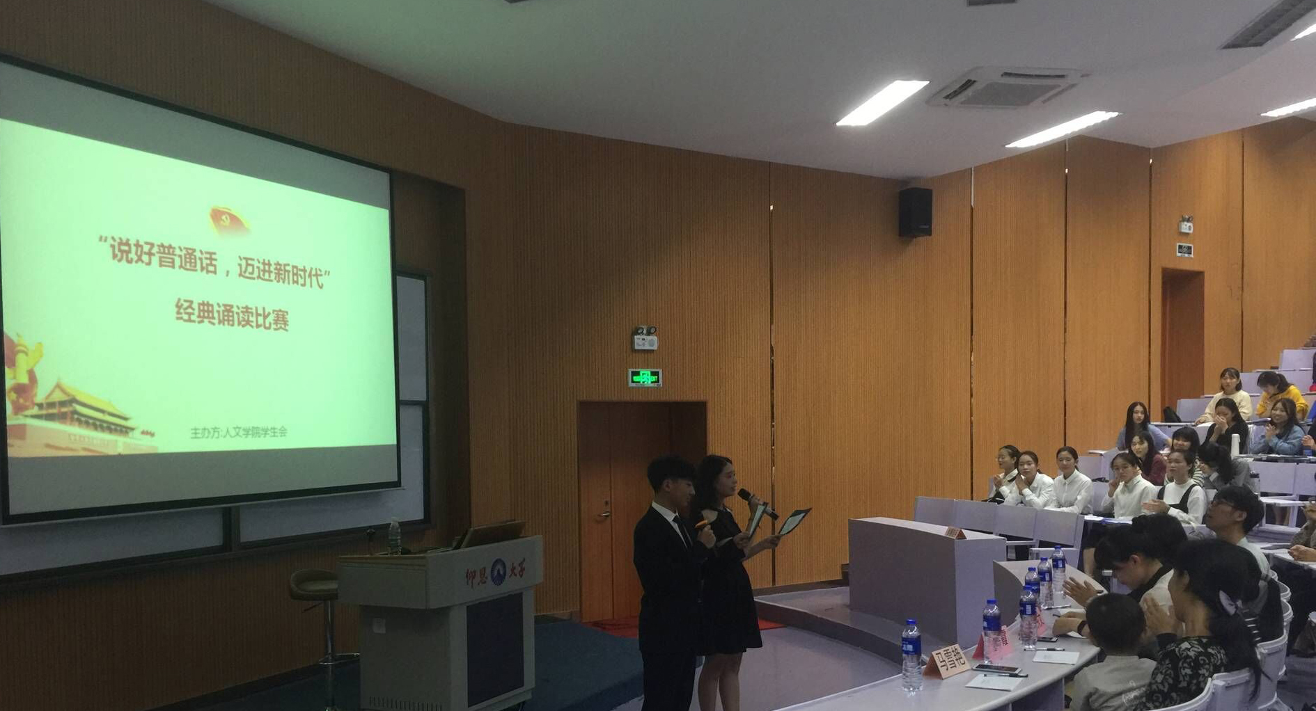 为贯彻党的十九大精神,庆祝改革开放40周年,10月16日晚,奥门新浦京官网于和昌楼博雅讲堂开展以“说好普通话,迈进新时代”为主题的经典诵读比赛活动。奥门新浦京官网岳秀文、张彩英、李清霞、马雪艳老师,辅导员李少聪,以及18级全体学生出席了本次活动。