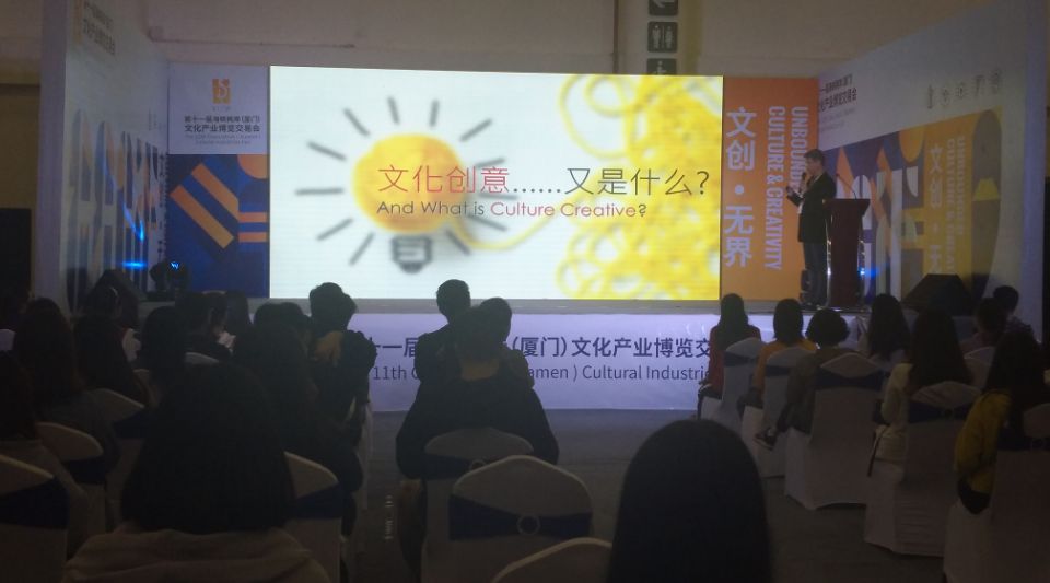 “海峡两岸文创移动课堂”现场 师生一行首先至我校学生入选作品参展区观展,今年奥门新浦京官网选 送的数字动画类 “惠女服饰”学生作品入选本届高校设计展,并在高校文创展区展出。6位专业教师带领学生分组参观考察了高校文创展区以及旅游文创产品、经济文创产品、文化创意展览等。观展期间参与了“海峡两岸文创移动课堂”活动,听取涉及“创造力开发、设计力、创意赋予商品生命力”“创意+涉及科技创新企业核心竞争力”等四场主题讲座。