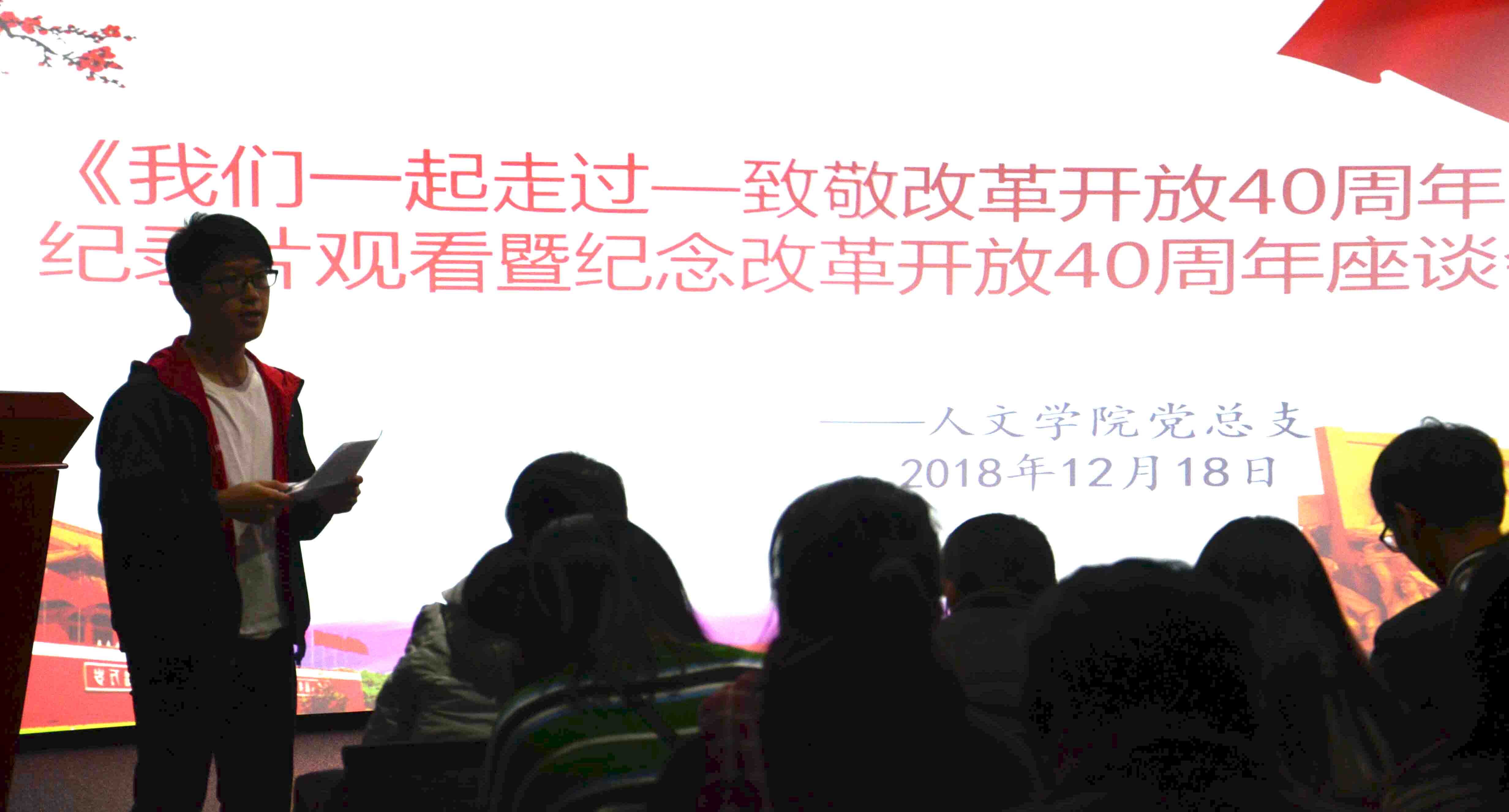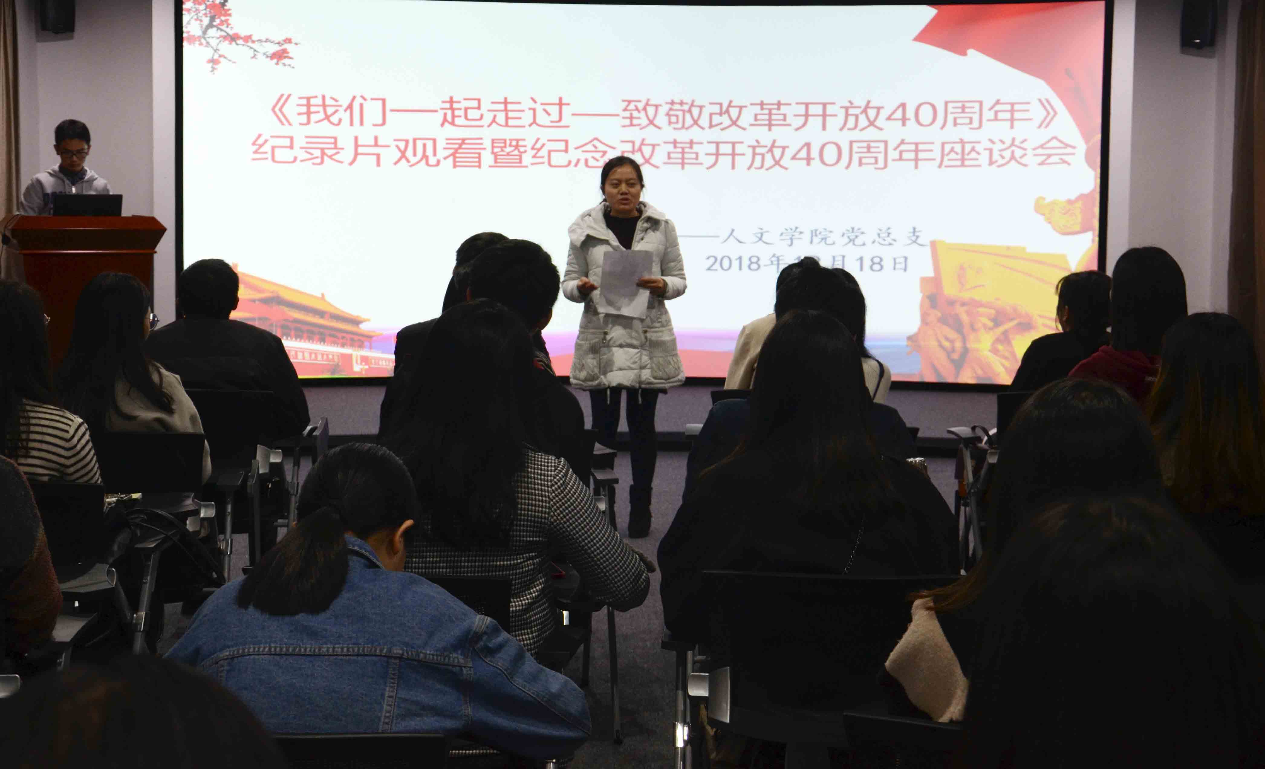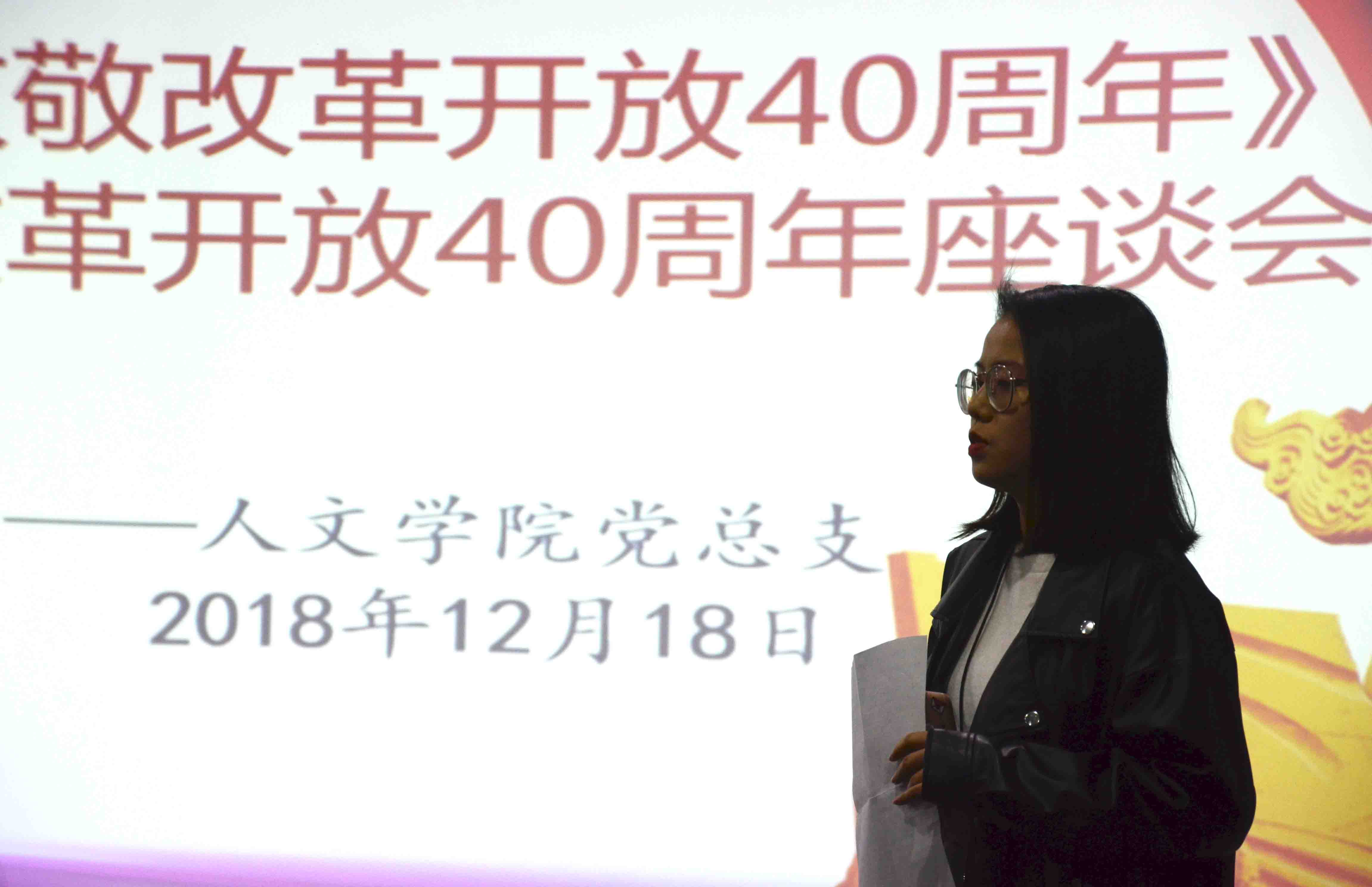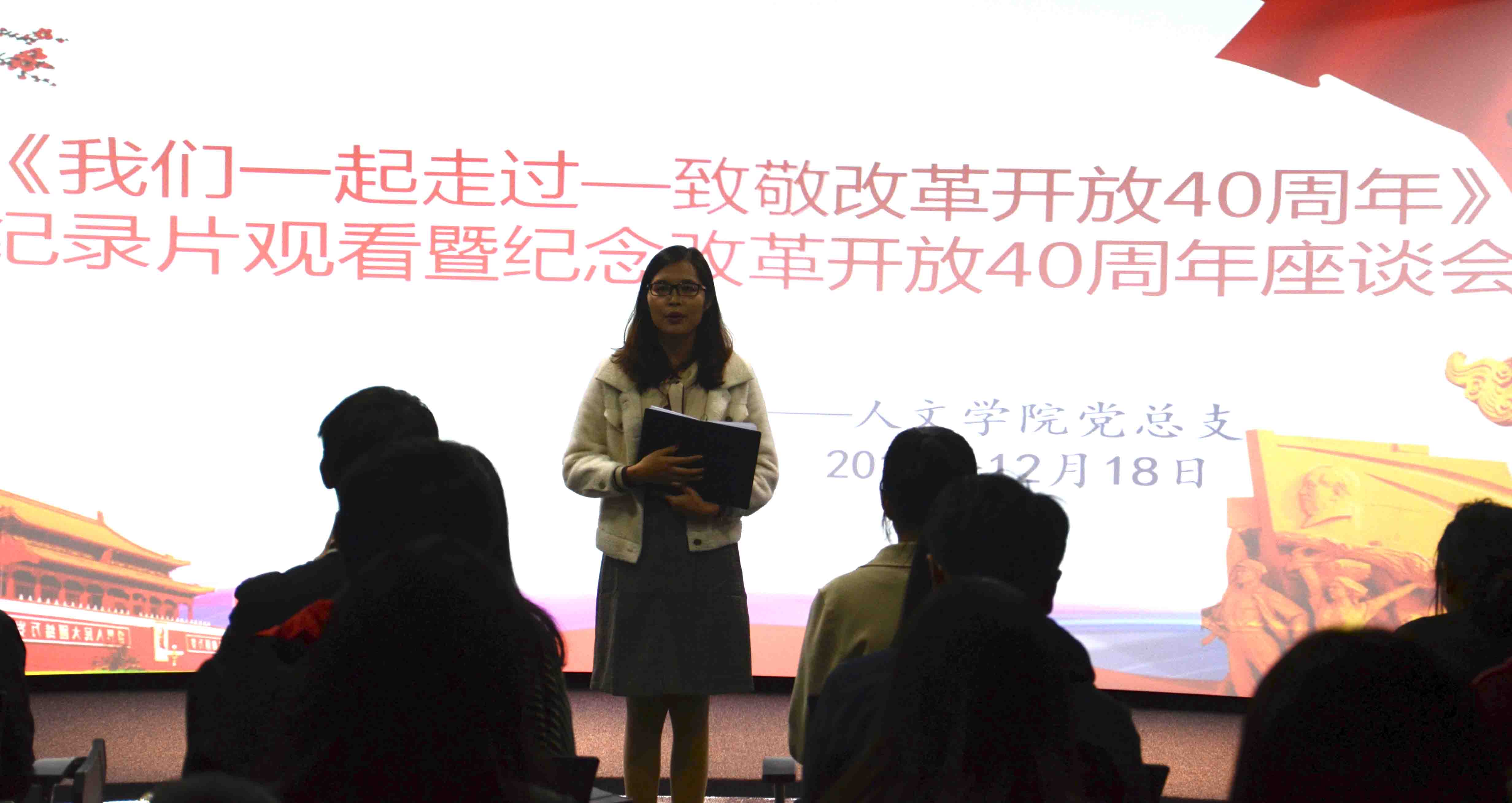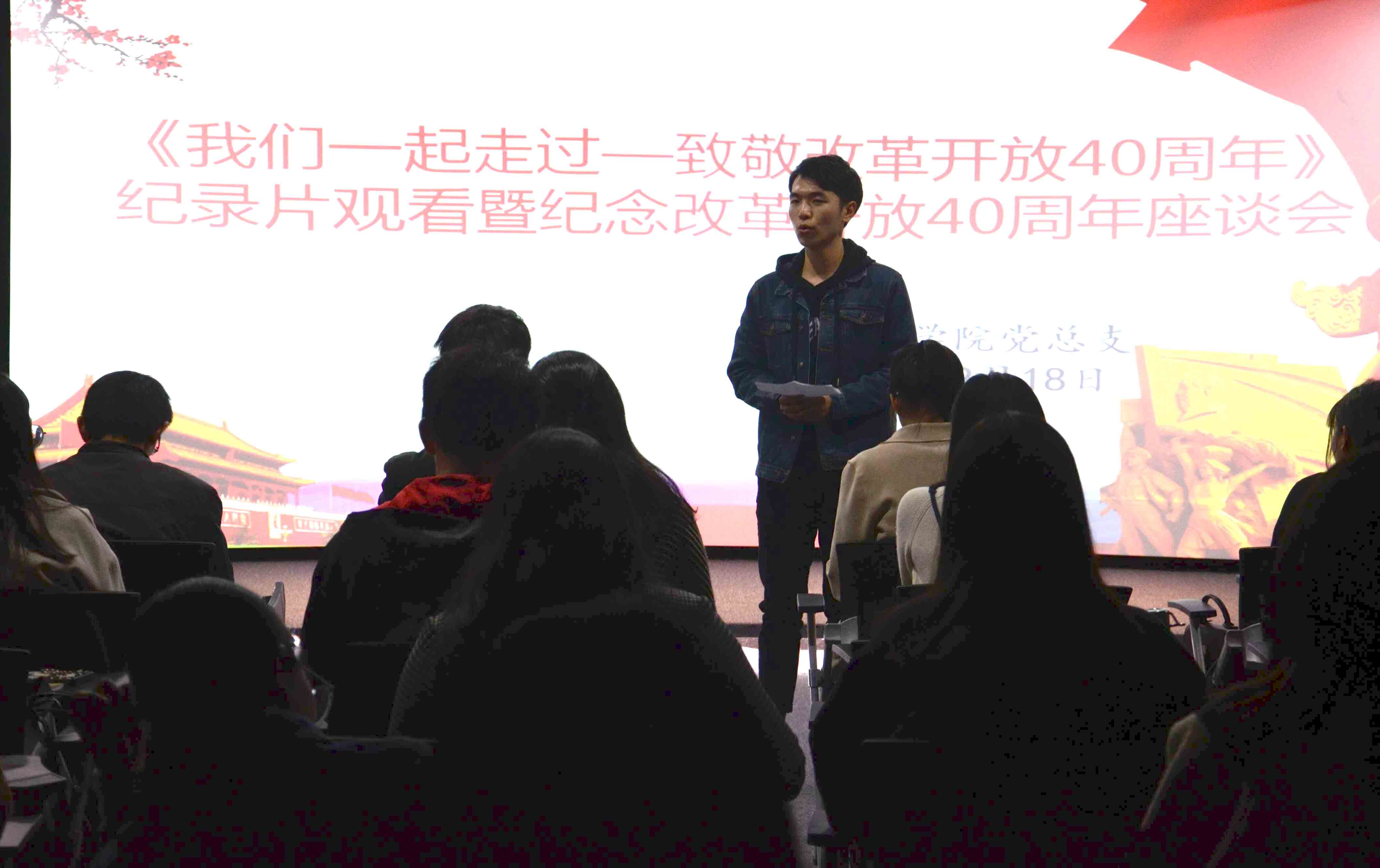 座谈会现场 在座谈会召开之前,党员代表们集中观看了大型纪录片《我们一起走过——致敬改革开放40周年》,座谈会由奥门新浦京官网党总支副书记刘巧玫主持。