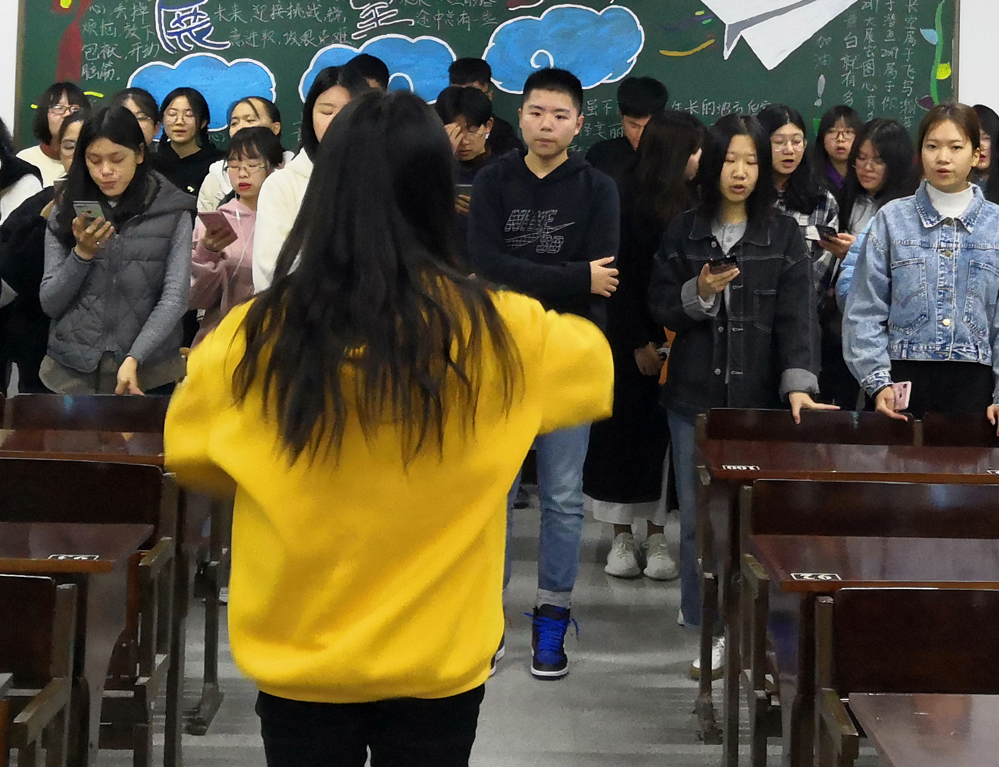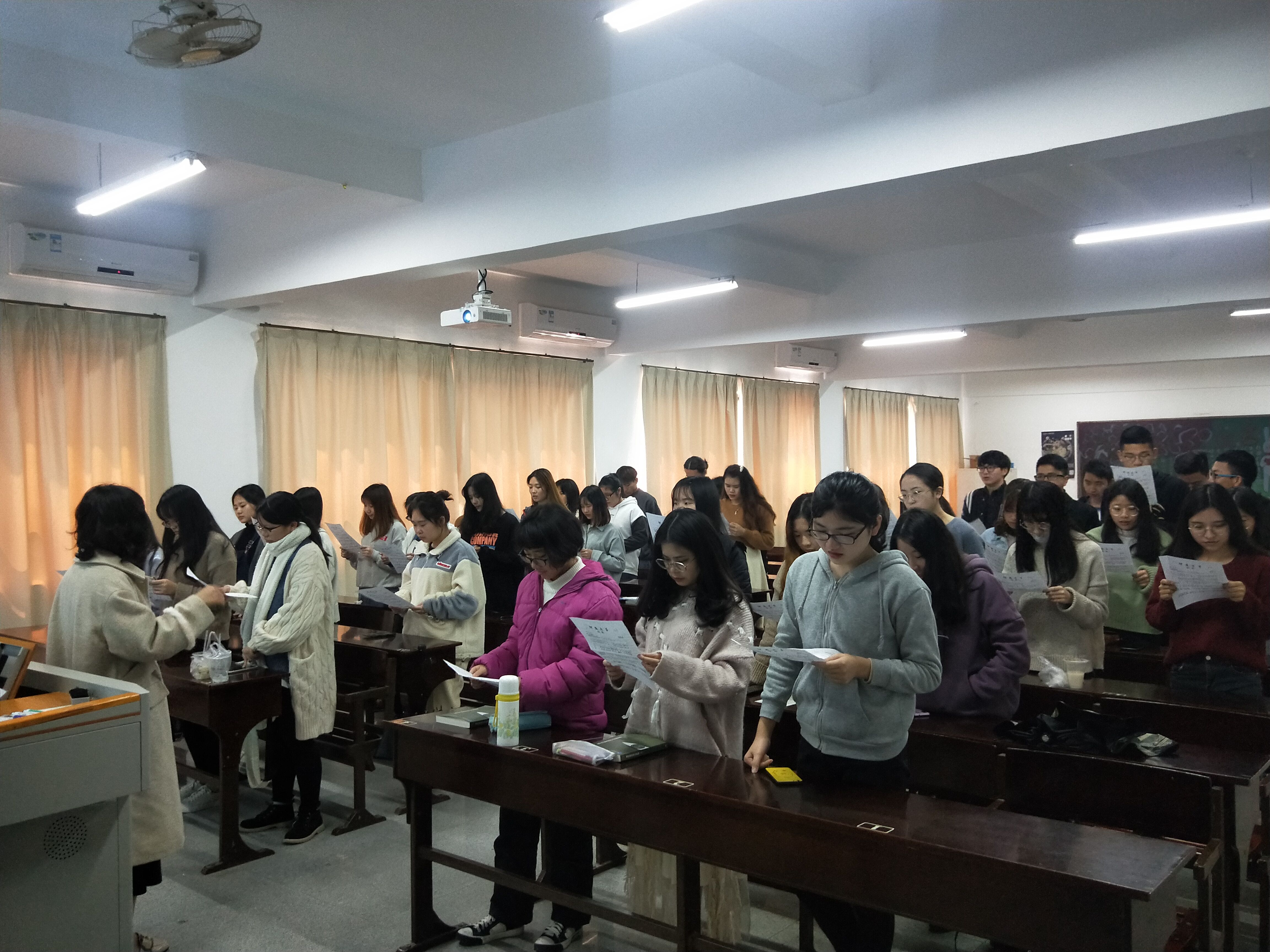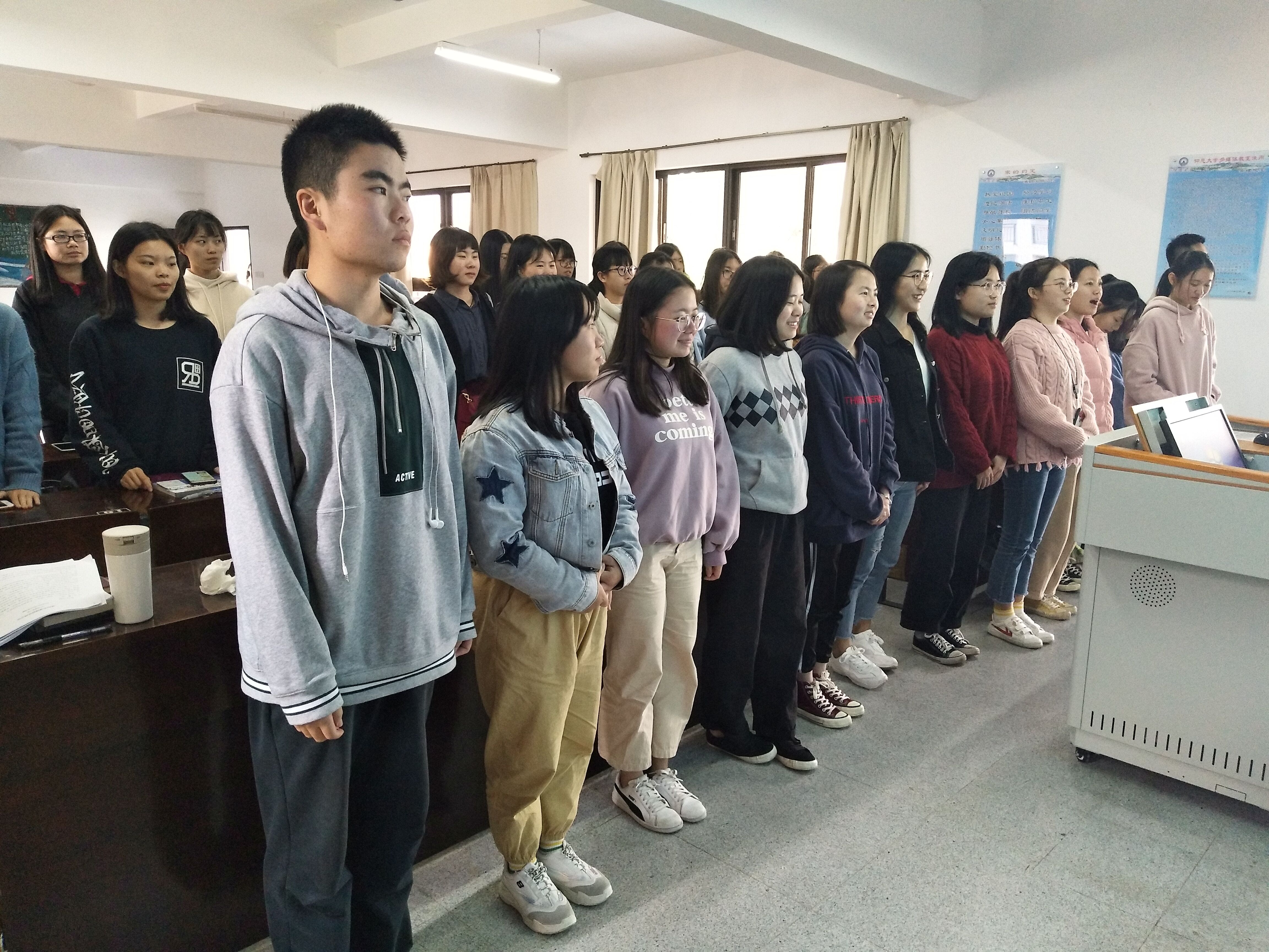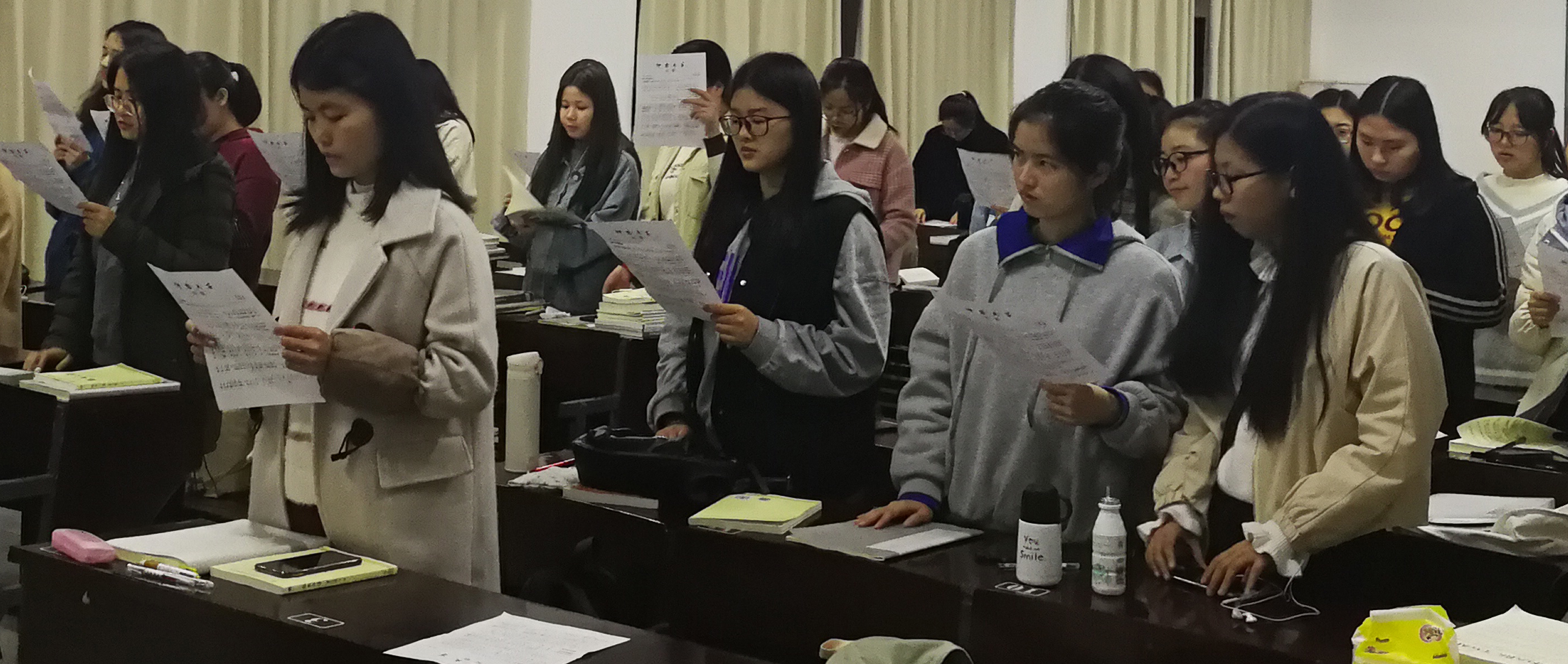 17中文1班排练现场 为庆祝中华人民共和国成立70周年和纪念“五四运动”100周年,进一步弘扬五四精神,展现全校师生紧跟时代、肩负使命、锐意进取的精神风貌,学校定于3月至5月举办以“爱国、感恩、奋进”为主题的仰恩大学第二十届五四合唱节活动。