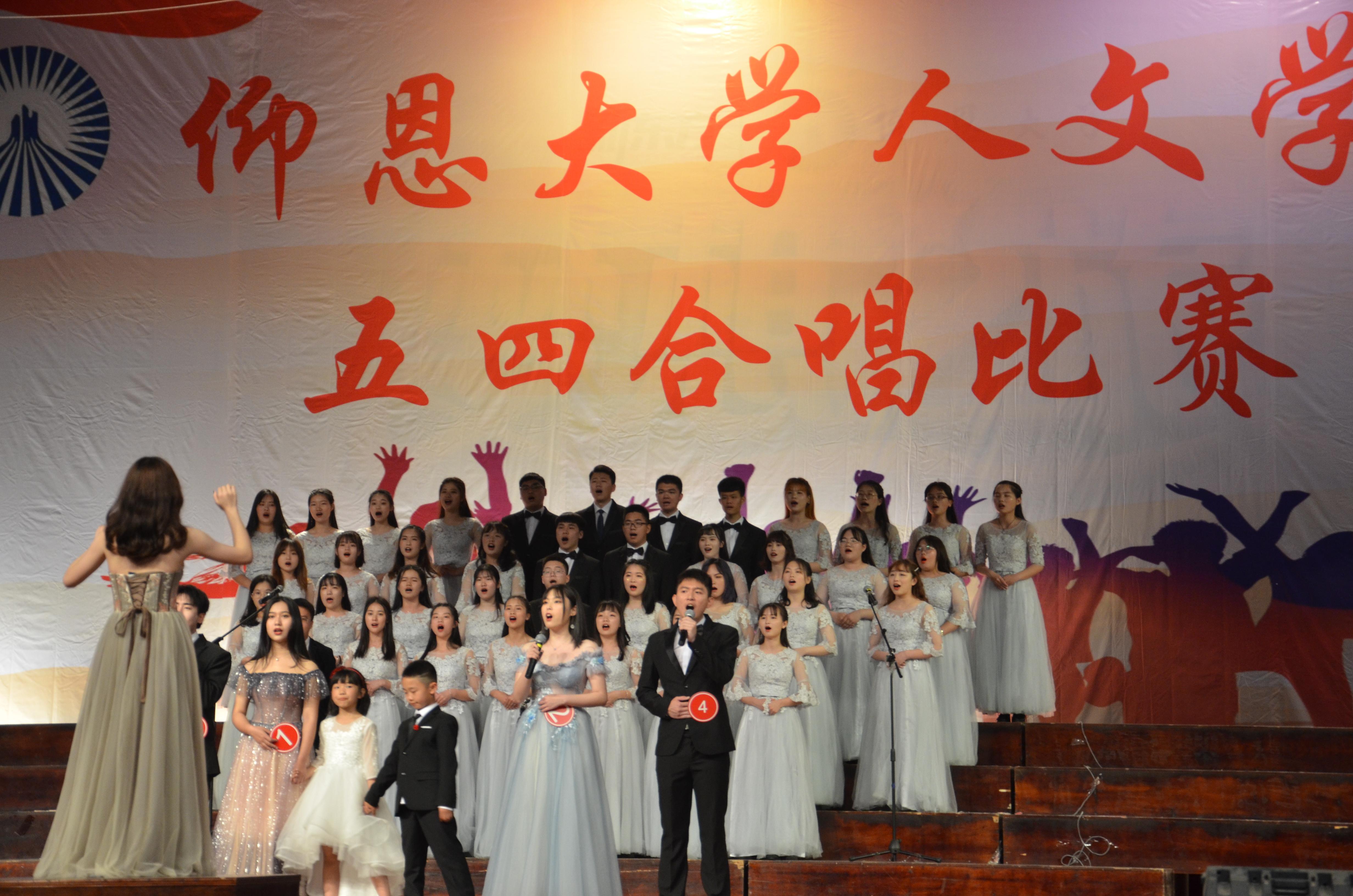 合唱比赛现场 本次合唱比赛是对广大学子进行爱国主义、集体主义和民族精神的生动教育。18个班级围绕“爱国、感恩、奋进”主题,用心歌唱,倾心演绎。在院系班主任和辅导员老师的悉心指导下,各班级利用课余时间精心准备,积极练唱,展现了人文学子爱国爱校、朝气蓬勃、昂扬向上的精神面貌。