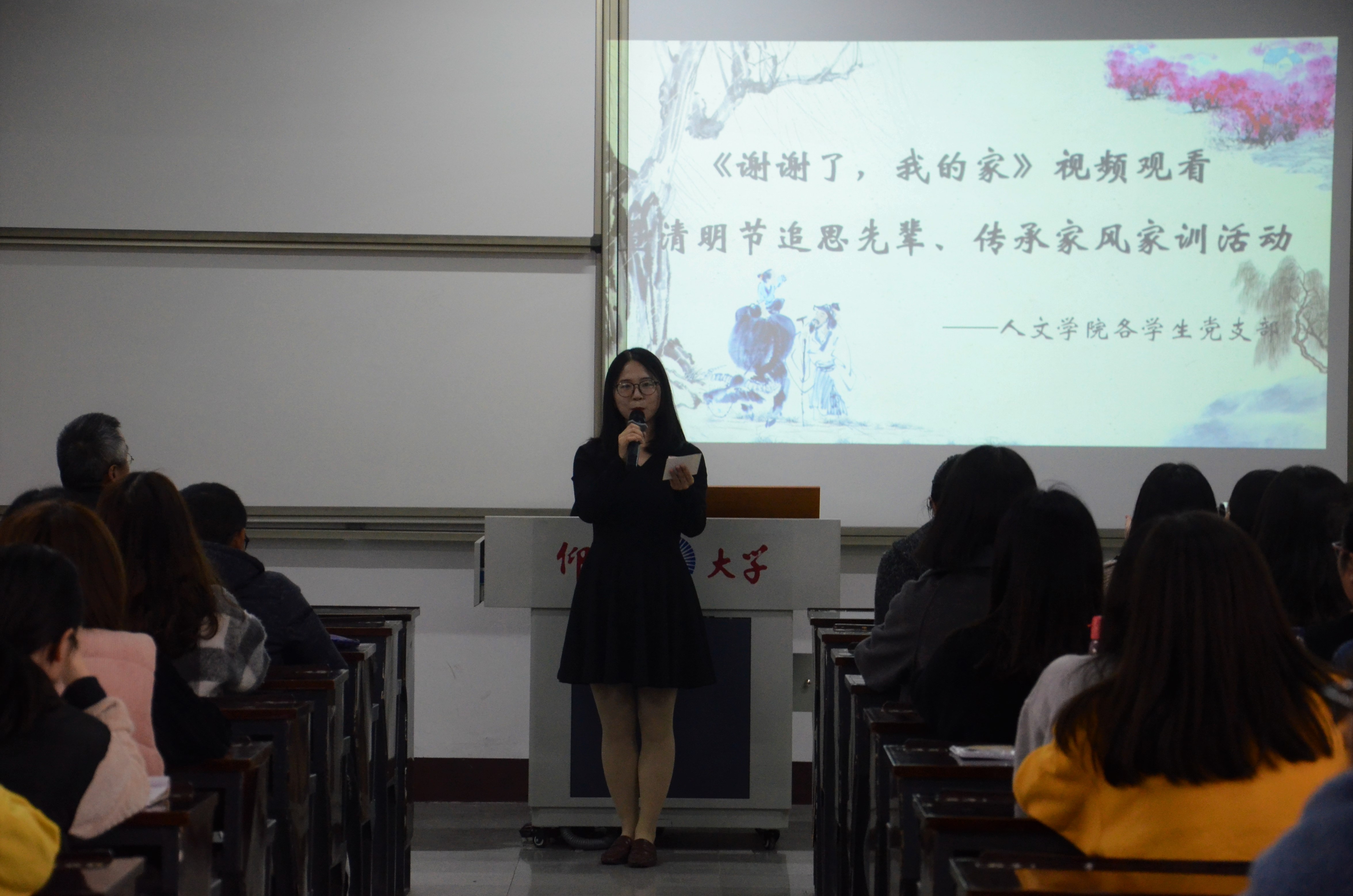 4月3日下午,在清明节临近之际,奥门新浦京官网组织党员和入党积极分子在仰恩楼C5-305教室开展“清明追思先辈,传承家风家训”主题活动,党总支书记胡友仁、副书记刘巧玫以及各学生党支部书记出席本次活动。