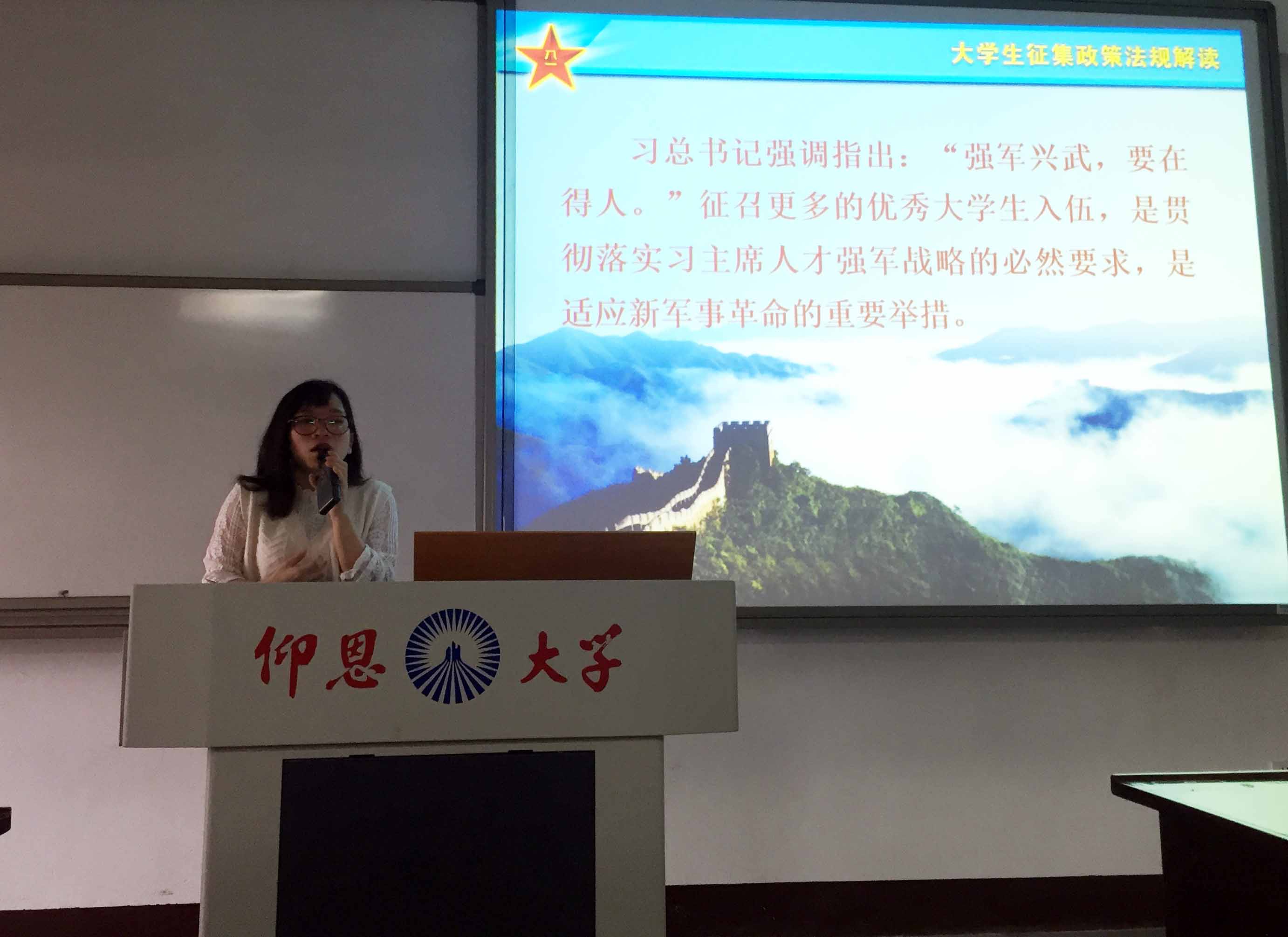 根据学校征兵工作的要求,落实学院征兵工作推进会的总体部署,奥门新浦京官网各班级于4月14日下午在各自班会课教室召开征兵主题班会,具体工作由班主任负责落实。各班级都组织观看了征兵宣传视频,进行了2019年征兵政策宣讲和现场答疑,其中重点学习了国防教育手册中的仰恩大学鼓励学生参军政策规定,针对新闻学专业的班级还着重讲解了从普通高校毕业生中招收士官有关政策。据悉,下一阶段,将由班主任开展一对一面谈工作。