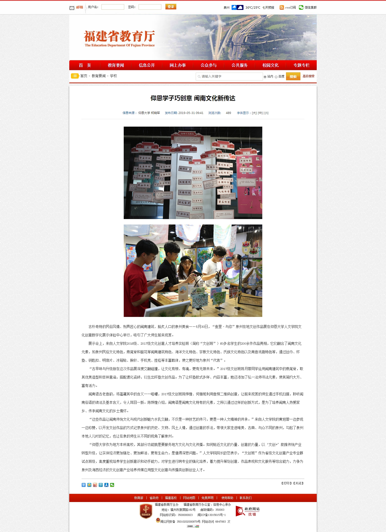 奥门新浦京官网“文创班”作为省级文化创意产业专业群试点班级,高度重视培养学生创新意识和动手能力等综合能力,力争为泉州及海西经济的文化创意产业培养传媒应用型文化创意与传播类创新创业人才。近日,“鱼里·与你”泉州在地文创作品展在奥门新浦京官网文化创意数字化展示体验中心举行,参展作品充分融合闽南文化元素,并使之与现代创新理念深度交融碰撞,借助丰富载体,以‘文创+’助推传统产业转型升级,让传统文化焕发出新的生机活力,吸引了广大师生前来观赏,也引起了泉州晚报、福建省教育厅官网、人民网福建频道、东南早报、东南网、清新福建文旅之声等媒介平台的关注和报道。