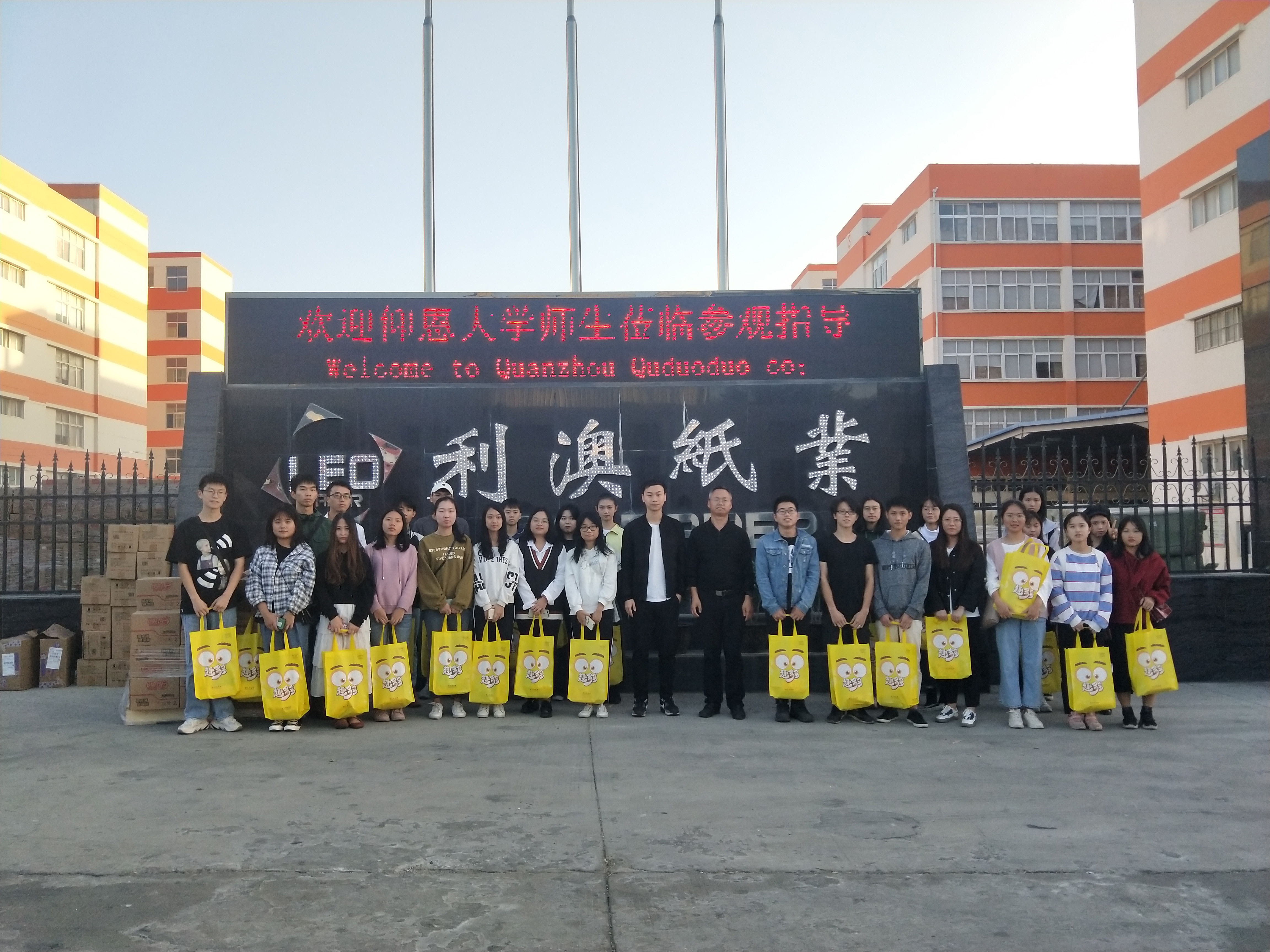 师生与趣多多卫生用品有限公司董事长合影