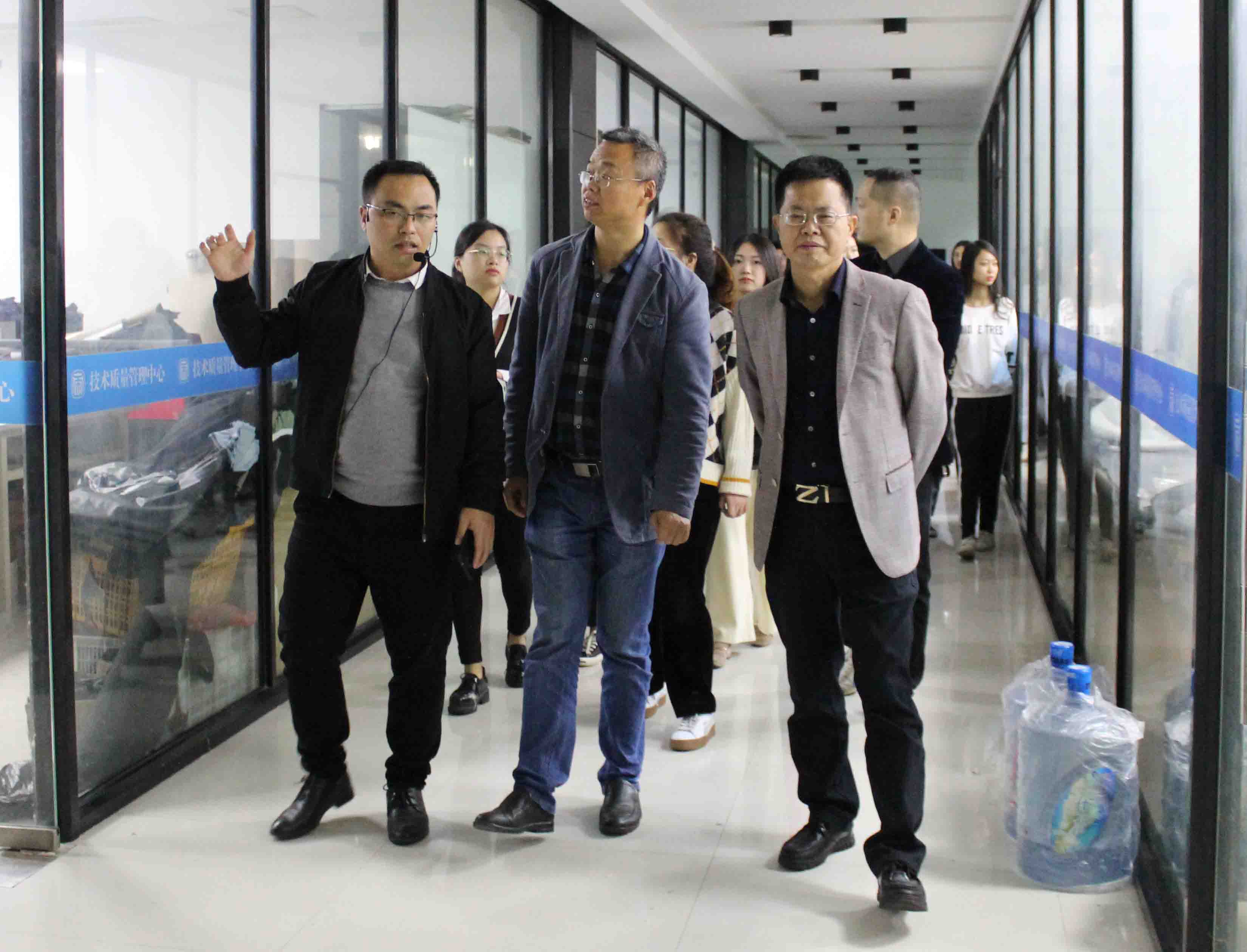 助理陈祥平进行讲解 陈助理还向大家介绍了大帝集团的品牌故事、品牌logo的旨意和内涵,分享了集团始终坚守“一个企业没有自己的品牌,就没有生命力”品牌经营战略,着力打造最具发展潜力的中国男装品牌,加快创新发展成为多元化综合性大型集团。师生对“帝”男装的品牌内涵有了更多的了解,对大帝集团“用时尚传承经典,让品牌荣耀人生”的企业使命有了更为深刻的认识。帝牌男装始终坚持把“为消费者提供高品质的商品”作为品牌的经营哲学,把商品质量管控作为企业战略管理重要组成部分。