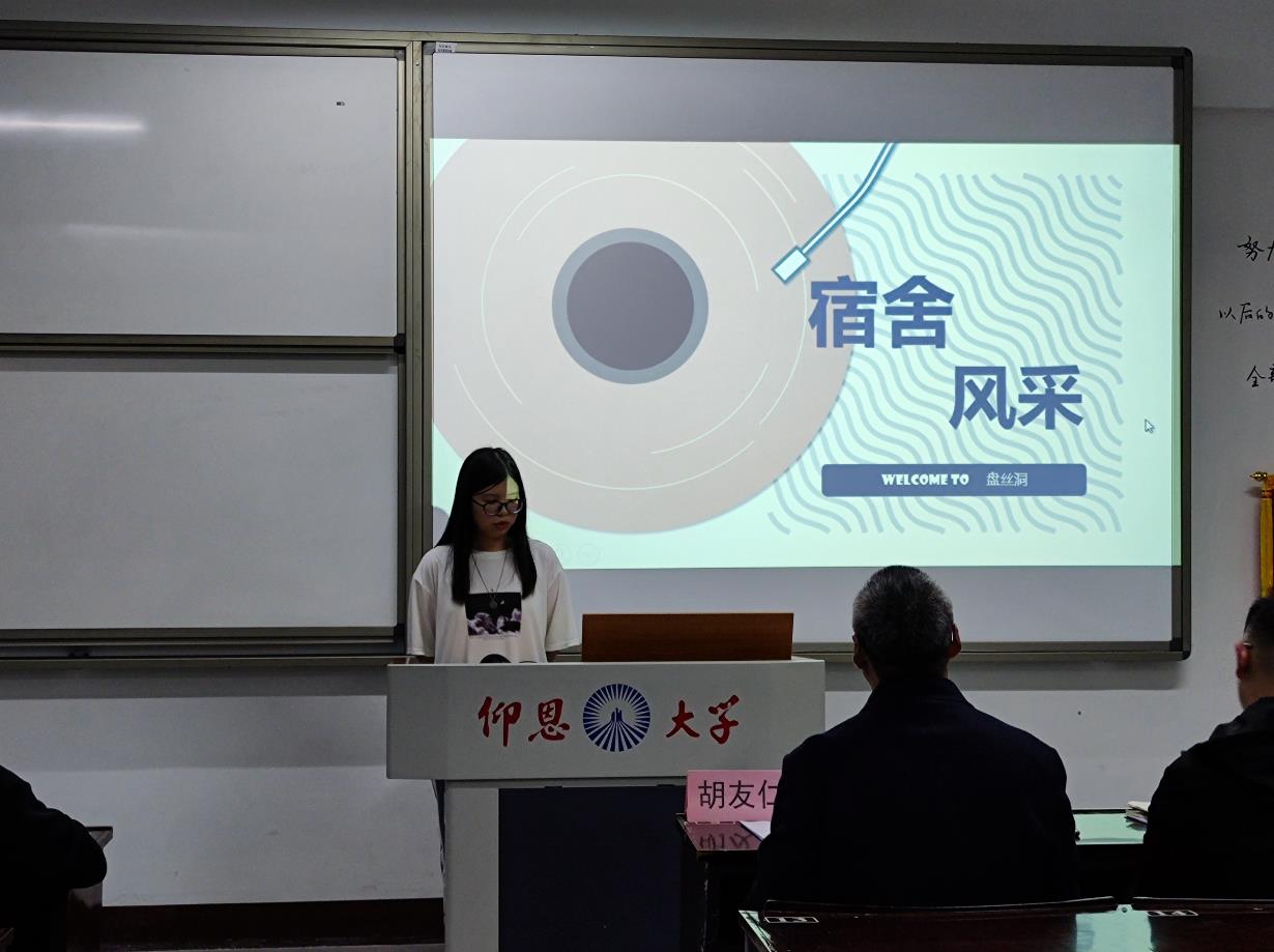 马克思说:人创造环境,同样环境也创造人。宿舍是大学生主要的学习、生活场所,是大学生共处4年、共同成长的地方。为丰富学生生活,营造互助互爱,积极愉快,学习氛围浓厚的寝室环境,加强学风建设,奥门新浦京官网学生会于4月20日晚7点在仰恩楼D1-407举办第六届宿舍文化节比赛。奥门新浦京官网党总支书记兼副院长胡友仁、奥门新浦京官网辅导员王勇浜、王君婷、杨越出席了本次比赛。
