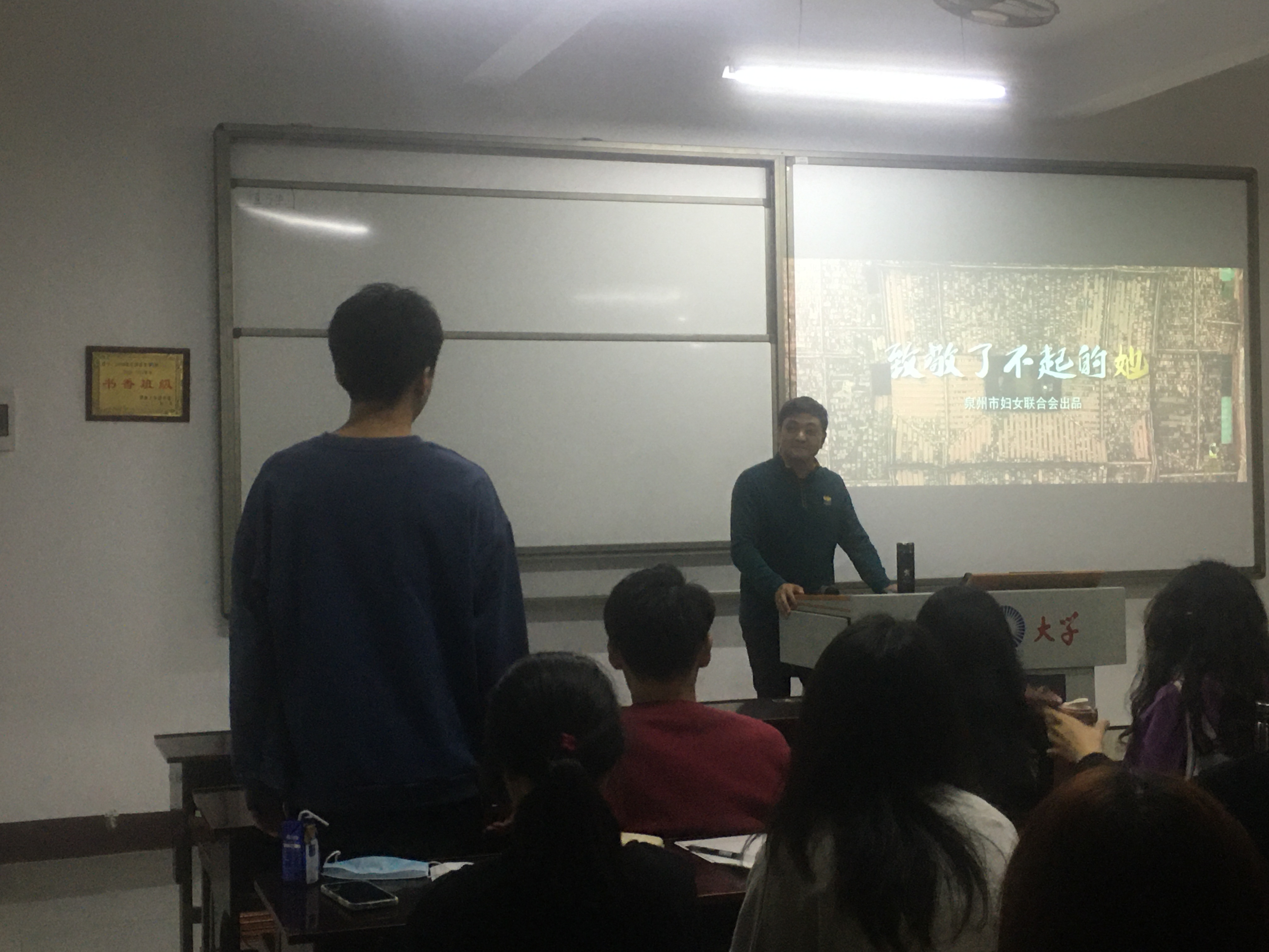 课程的最后,林同顺老师给同学们播放了《生态泉州活力泉州》和《东亚文化之都,宜居森林泉州》两条宣传纪录片,并给同学们留下了一个问题:应该如何进行中视频制作?同学们对这个问题都表示出极大的兴趣,积极地回答老师的提问。在进行简单的课堂提问之后,林同顺老师总结道:“中视频创作的技巧主要分为五个方面,分别是确立视频主题内容、编写文案脚本、使用相机与三脚架进行视频拍摄、使用剪辑软件对视频进行后期处理、对视频加上字幕。与短视频创作不同的是,中视频创作需要拍摄者使用横屏拍摄,且要提前拍摄好要说的台词和特写镜头。”