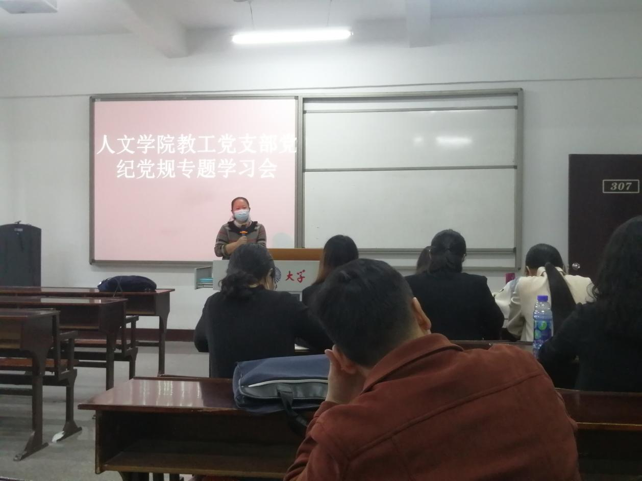 依照奥门新浦京官网党总支学习安排,11月17日下午4:00 ,奥门新浦京官网教工党支部在普照楼307教室召开关于党纪党规专题学习会议。会议由教工党支部书记刘丹同志主持。