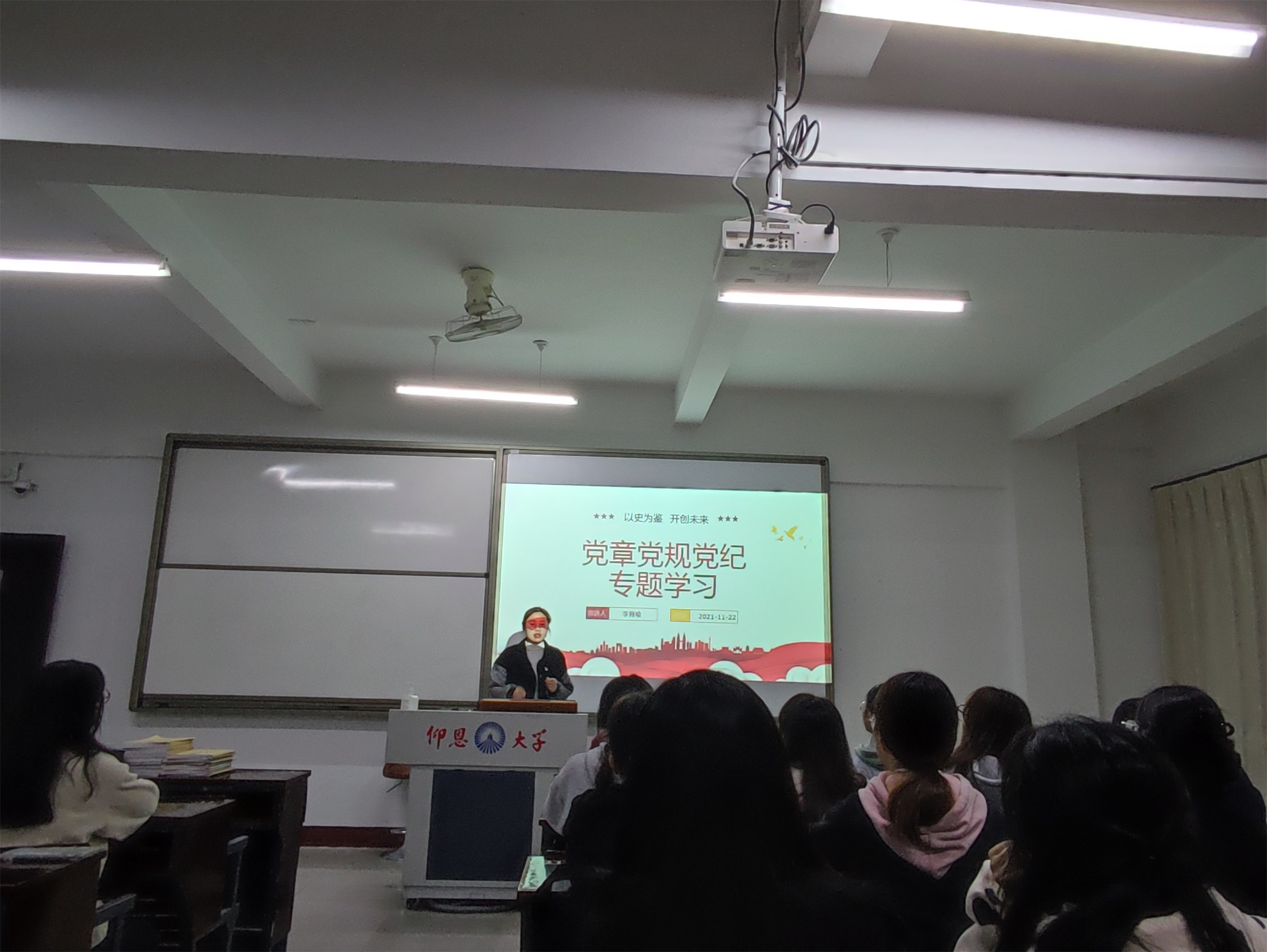 在此基础上,李育瑜老师分享了自己的学习感受并强调了党规党纪是我们党治国理政、管党治党的重器,是我们党的一大政治优势,学习党规党纪是对每位党员的一次思想的碰撞、灵魂的洗礼和党性的升华。