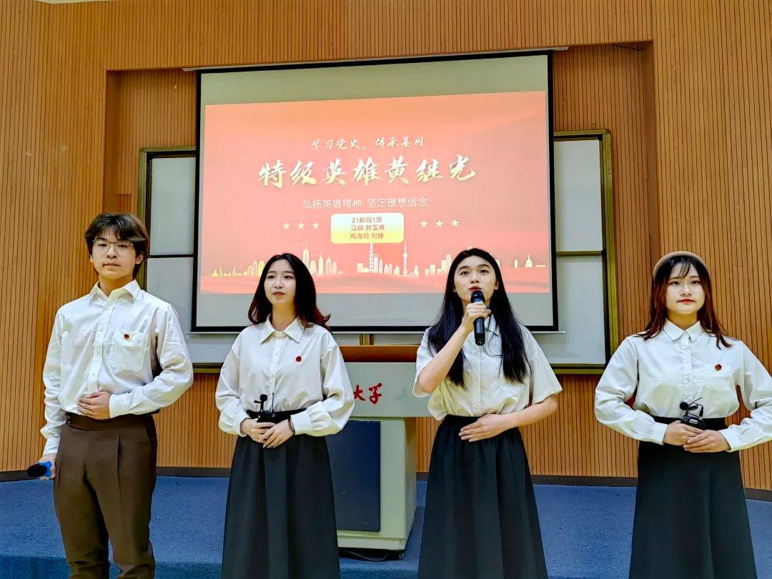 在本次比赛中,来自21级新闻1班的“桃林留硕果”队的四名成员江硕、林玉琳、陶海玲、刘婷,以《特级英雄黄继光》为题,讲述了21岁用青春热血誓死扑灭敌人嚣张气焰的特级英雄黄继光的感人故事。最终,他们以第二名的好成绩取得本次活动的二等奖。(奥门新浦京官网团委/文图)