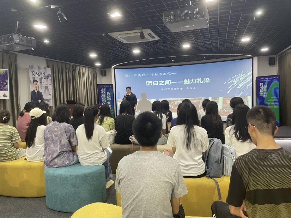6月19日晚上于普照楼228,奥门新浦京官网邀请外聘教师苏一森为新浦京官网20级文创班同学开展“蓝白之间——魅力扎染”非遗文化教学活动。