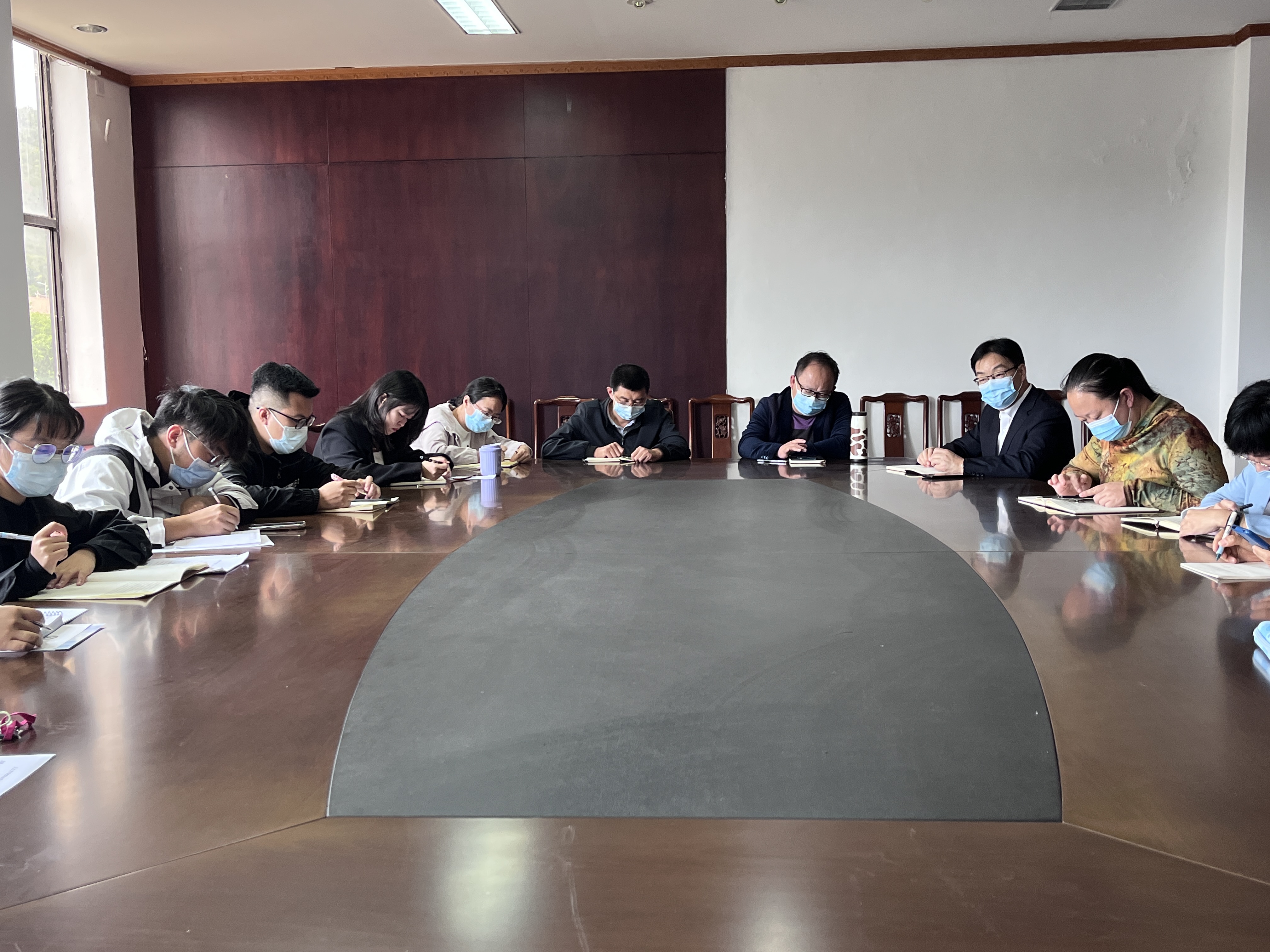 11月2日下午,奥门新浦京官网党总支理论学习中心组在新区行政楼会议室集中理论学习,专题传达学习党的二十大精神。党总支书记岳秀文主持会议并讲话,理论学习中心组全体成员参加会议。