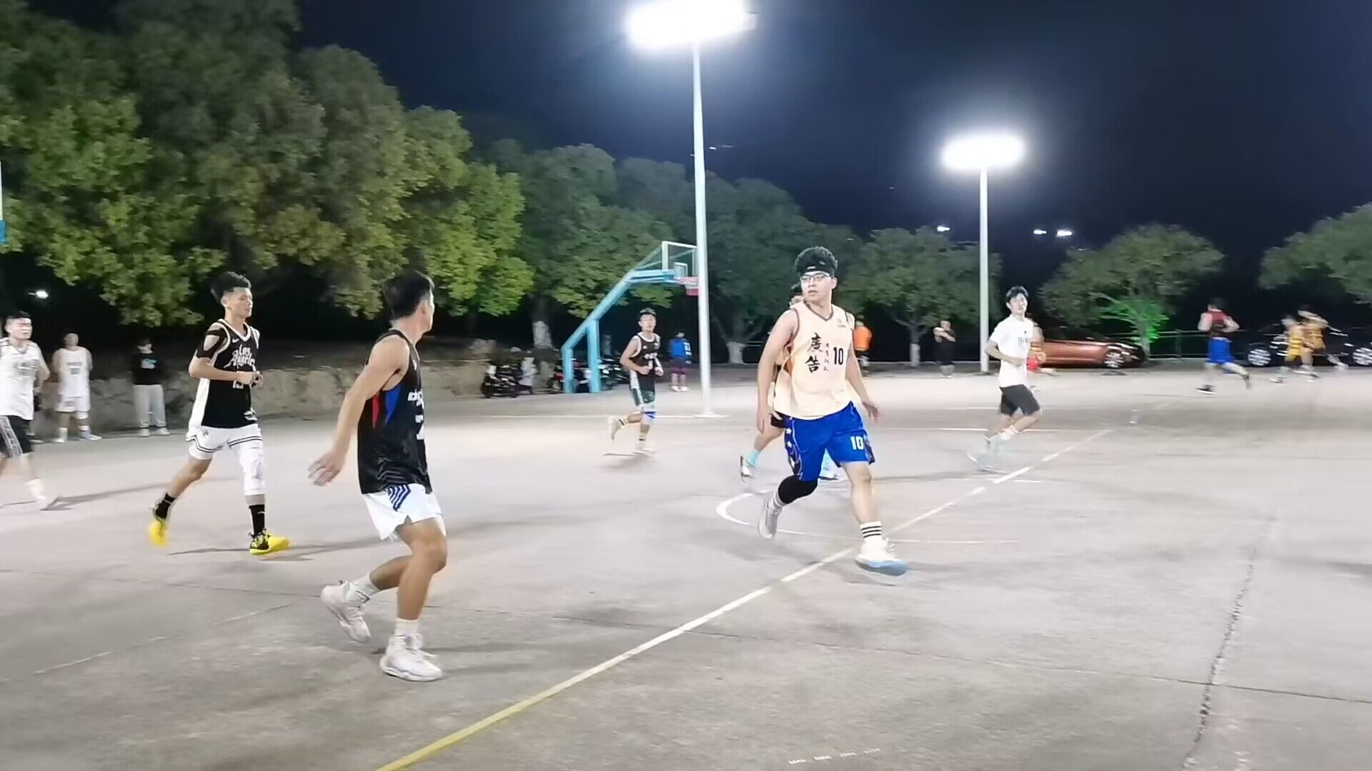 随着哨声响起,篮球比赛正式拉开帷幕,双方球员随即进入激烈的比赛状态。他们在团体配合中默契传球,在奋勇拼搏中你来我往,在你争我夺中命中投篮。向上奋斗的雄心壮志和永不放弃的勇气,充分展现人文学子的优良品质。汗流浃背的他们仍然坚守赛场,观众的呼喊、队友的期冀、朋友的关怀,为这些充满活力的年轻人带来无限的力量。矫健的步伐、严密的防守是对团队合作最完美的诠释。哨声与呐喊和鸣,舞步与灯光相映。短暂的修整后,让球员们蓄锐争光,时光从不逗留,结束的钟声已然敲响,宣布着这一场篮球友谊赛就此圆满结束。