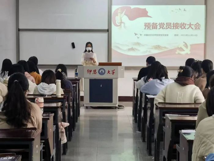 中国语言文学系学生党支部于12月14日上午8:30在仰恩楼B1-201召开预备党员接收大会暨预备党员转正大会。