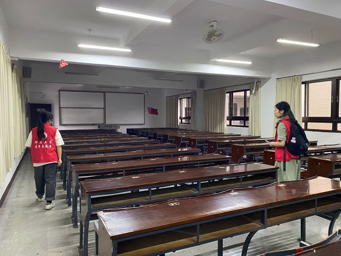 最后,学风督导小组在“早八”时间点,开展检查学生上课出勤情况、检查学生带餐进教学楼情况、检查学生课堂纪律情况、检查学生穿着是否得体情况等四项具体工作。