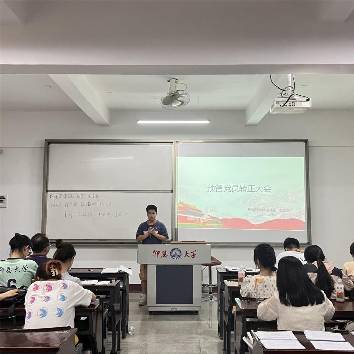 新闻传播学系学生第一党支部于67晚上19:30在仰恩楼A2-105召开预备党员转正大会,学生第一党支部书记曾璐老师周杨老师出席本次会议