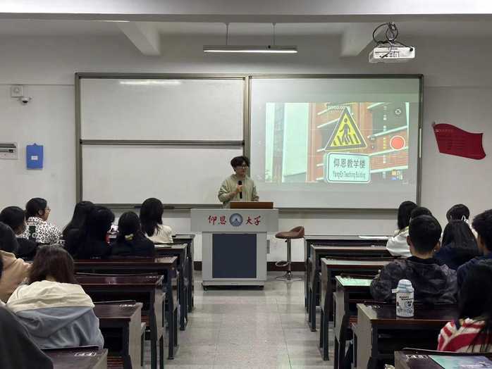 此外,他为同学们分享了提升个人能力的经验。他提出,同学们应在大学生活中分配好学习与娱乐时间,在社团活动中提升个人能力。以及要做好未来的规划,找到合适的目标,坚持不懈地为之努力。