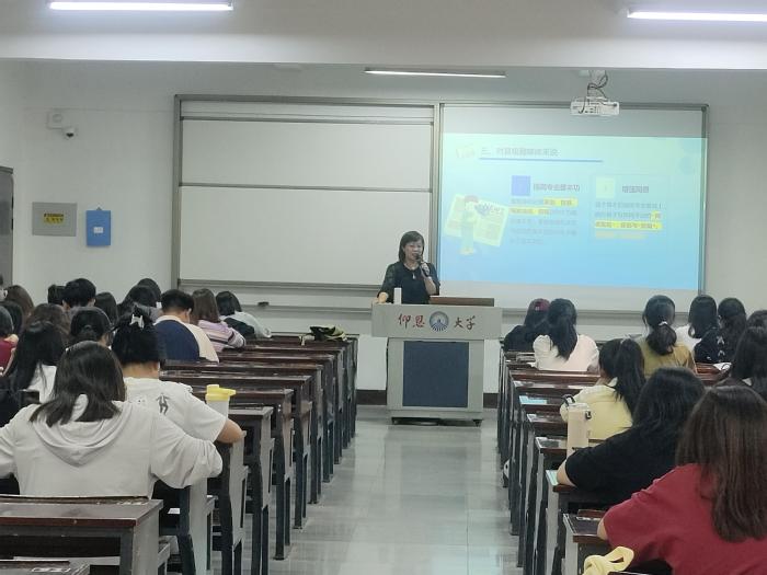 随后,王金辉围绕着2023年和2024年中国网络视听发展进行概述,为同学们讲解了短视频创作中的定位类型,以及如何选题、如何实施策划以及如何写好视频文案。王金辉结合具体案例,深入浅出地讲述了短视频创作要贴近时代、贴近泥土,创作时要以细节和场景为主来讲好故事。同时,她提出在创作中要将“以人为本”贯穿于新闻采编的生动实践中,强调了短视频创作要有深度和态度,鼓励同学们直面创作挑战,有所作为,采写出更多让时代和人民满意的优秀作品。
