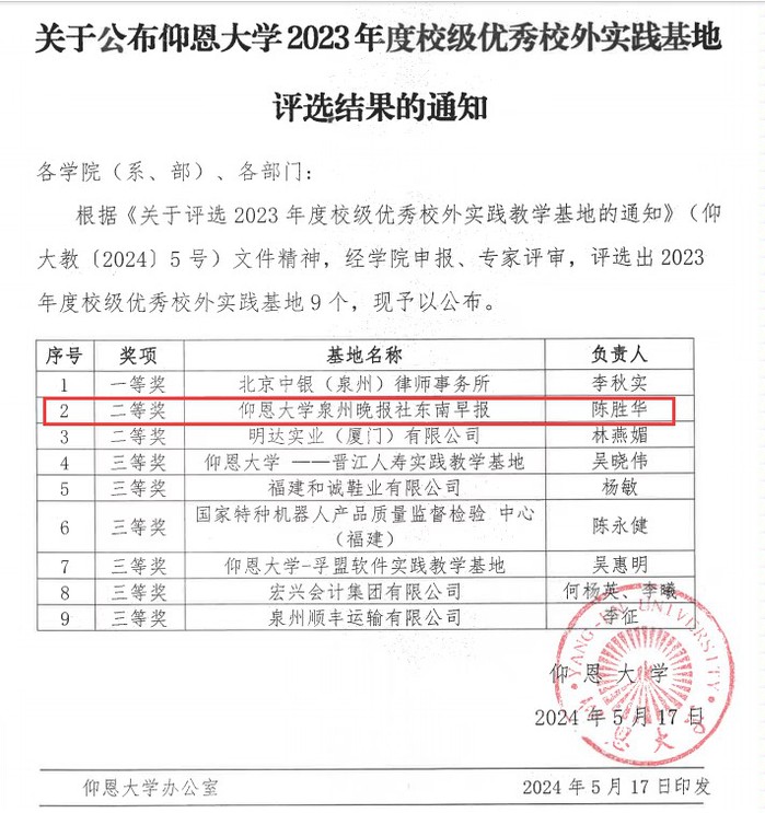 近日,关于评选2023年度校级优秀校外实践教学基地的结果已公布,经学院申报、专家评审,新浦京官网新闻传播系负责的基地荣获校级优秀校外实践基地二等奖。