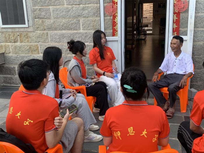 7月14日,奥门新浦京官网田园“惠”匠坊实践队前往惠安县五峰村村委会旁蔡秀敏老党员的家中和峰后村陈秀良老党员的家中开展“传承红色精神,倾听老党员的时代故事”主题活动,与年逾古稀却精神矍铄的老党员们进行了一次跨越时空的对话,共同回顾了那段波澜壮阔的历史。