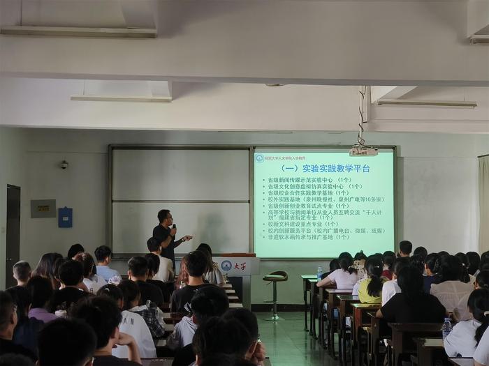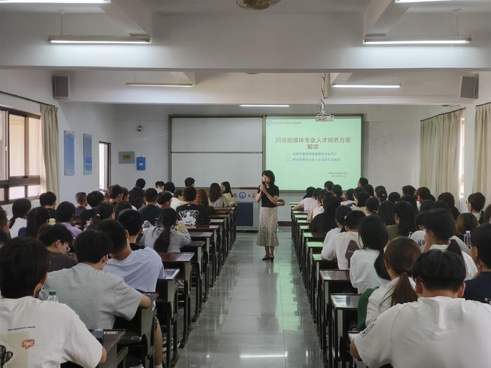 为帮助新生明确学术发展方向与未来规划,9月10日上午,新浦京官网在和昌楼乐之讲堂、博雅讲堂、海纳讲堂、仰恩楼D2-401开展各系新生专业教育。中文系主任苏顽鹏、品牌传播系主任王秋燕、新闻系主任陈胜华、网络与新媒体专业负责人郭强主持现场,各系专任教师参会。