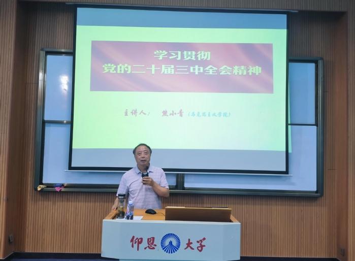 9月18日下午,奥门新浦京官网召开党的二十届三中全会精神宣讲会,本次讲座邀请马克思主义学院熊小青教授主讲,奥门新浦京官网全体师生党员参加。讲座旨在深入学习领会二十届三中全会精神,进一步增强学院党员的政治觉悟与使命感。