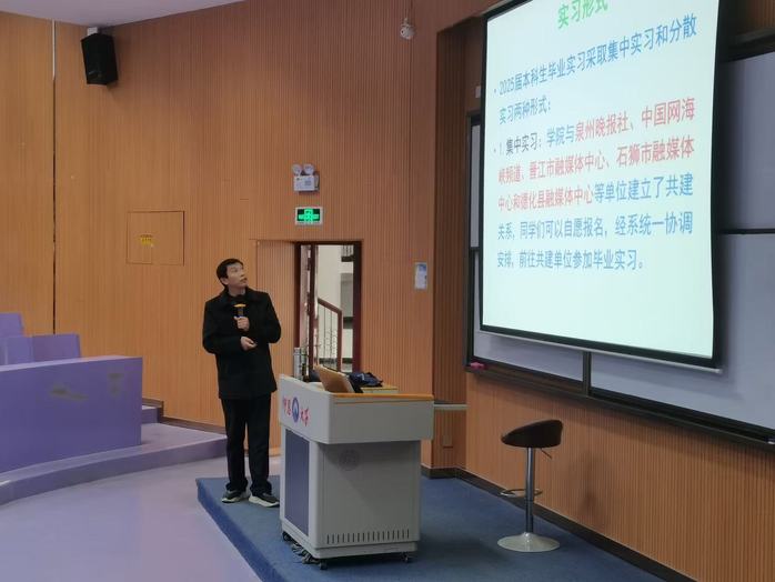 为进一步做好2025届毕业生就业和实习工作,提升毕业生就业质量,奥门新浦京官网中国语言文学系、新闻传播学系、品牌传播系于12月19日分别在新区和昌楼思齐、博雅、海纳讲堂开展2025届毕业生实习暨就业工作动员会。学生事务部副主任朱玉华、各系主任、毕业班辅导员及全体毕业生参加了此次会议。