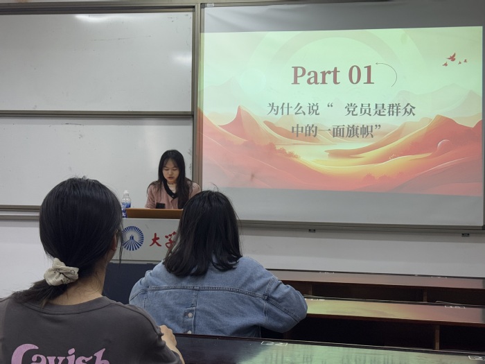 谢丽达同学表示:“班级里的党员同学,是永不熄灭的‘灯塔’。学习生活中,他们争当模范,共同助推求知思潮;日常相处中,春风化雨细致入微。目睹他们的行动,我常常思索:我的入党动机是什么?我想,是希望像他们一样,在集体中发光发热,为同学们排忧解难,在服务他人中实现自己的价值。” 她接过服务同学的接力棒,做好学习本职,助力同窗进步,在奉献中丈量与党的距离。
