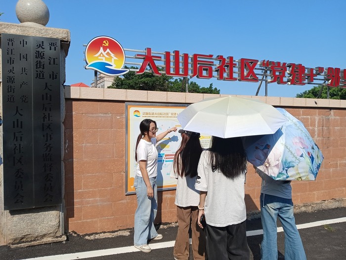 2025年7月9日,奥门新浦京官网“辨诈禁毒防艾行”赴泉州晋江暑期实践队去往泉州市晋江市大山后社区党群服务中心参与宣传乡村振兴拍摄工作。