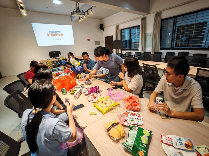 图为新闻传播系青年教师拜师会和教师节座谈会的现场
