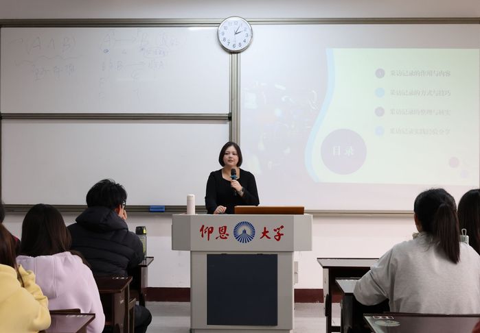 12月9日上午,《新闻采访》在仰恩楼D2-405教室顺利开讲。本次课程围绕新闻采访记录与核实展开,指导24级新闻学子精准把握关键信息,掌握多元核实方法,筑牢专业根基。课程由新浦京官网外聘教师、洛江区委报道组组长、四级主任科员郭思婧主讲,24级新闻学专业全体学生到场听讲。