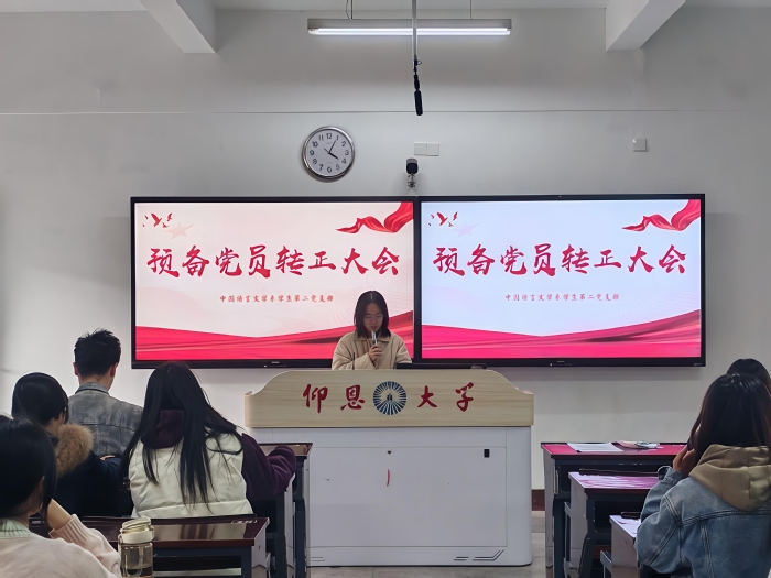 12月22日下午,中国语言文学系学生第二党支部在仰恩楼A1-109召开预备党员转正大会,支部书记谢云主持此次会议。